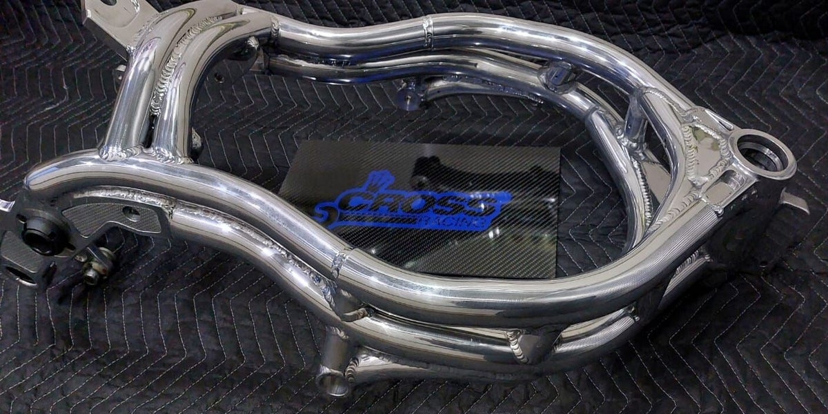 At Cross Customs, we specialize in fabricating a wide variety of high-quality bike components. Our custom drag racing frames are designed to be incredibly stiff and lightweight. Featuring a short-neck design, these frames lower the bike by approximately 50mm, ensuring an optimal riding position. Built around the GSXR 1000 K series, our frames are approximately 3kg lighter than a standard Suzuki frame. Additionally, we offer modifications for any standard frame to meet your specific needs.
